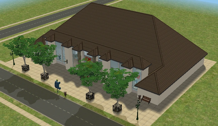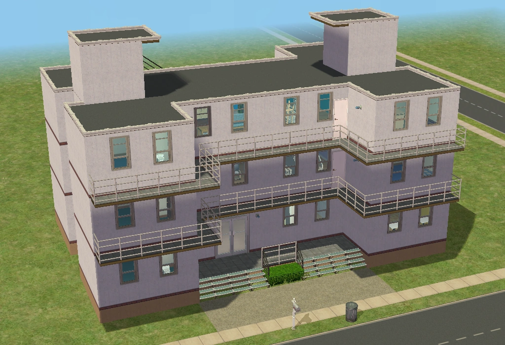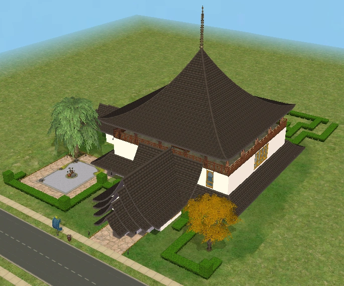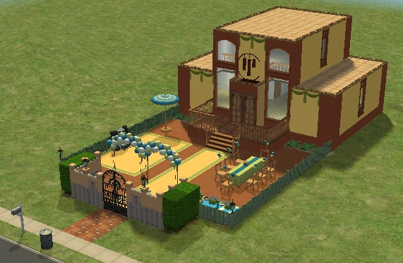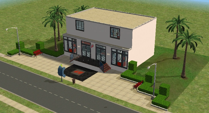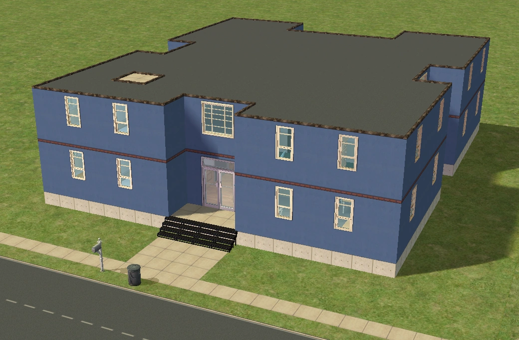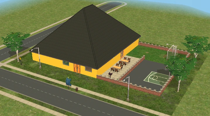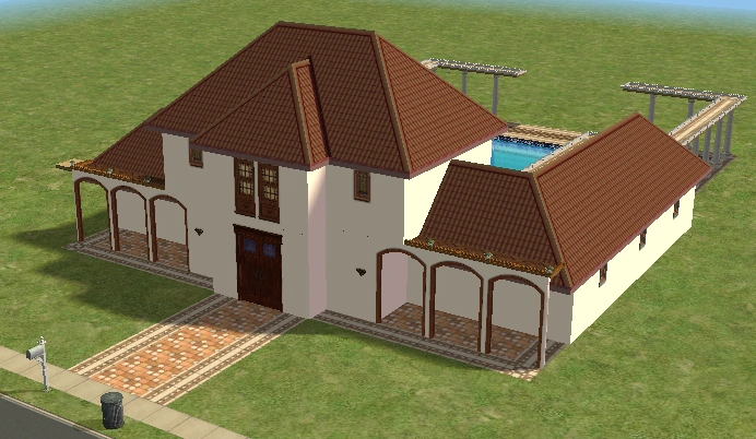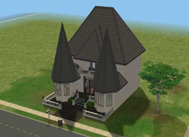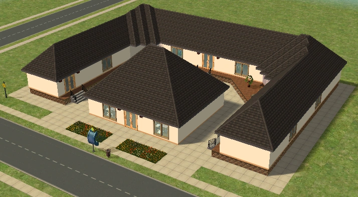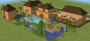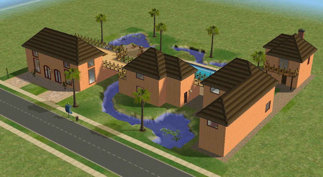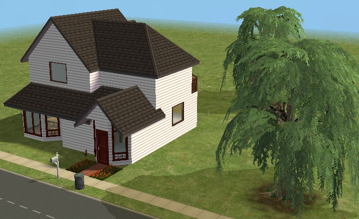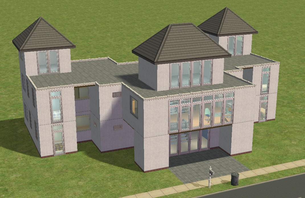 A lot created by MaxoidMonkey depicting a modern luxury home, this lot, along with 220 Wright Way, was presumably uploaded to The Sims 2 Exchange. In 2014, it was reuploaded by Missmaxoid following the shutdown of TheSims2.com. Judging by the lot terrain and street name, this lot is supposed to be placed at the end of Sim Lane, in the middle of the intersection of Lakeside and Sim.
