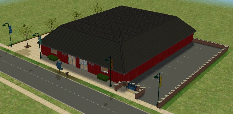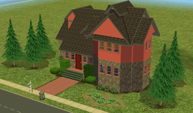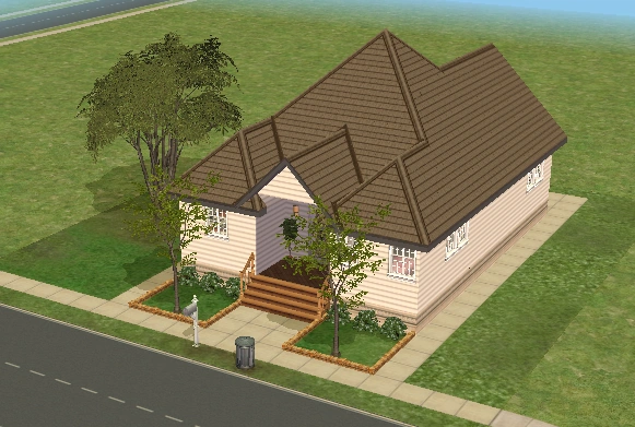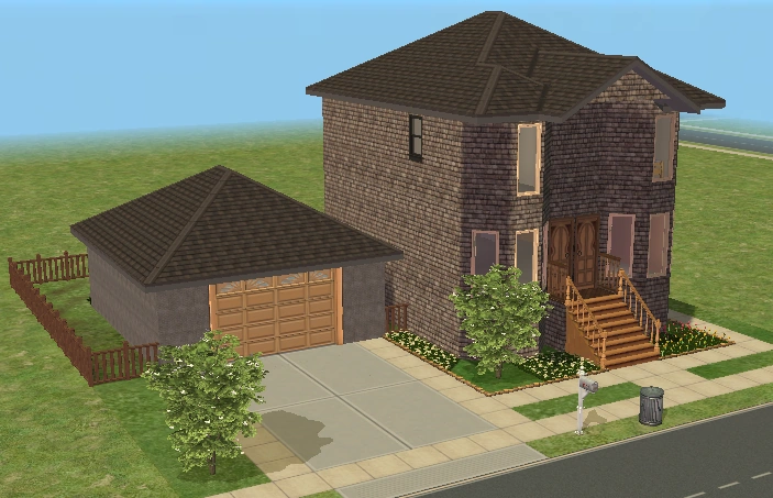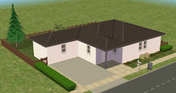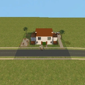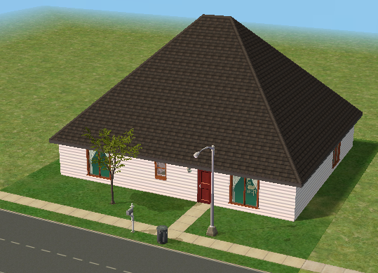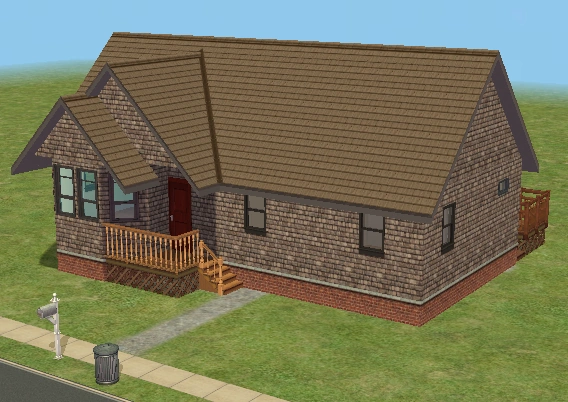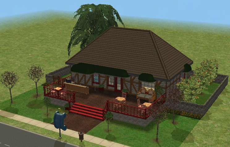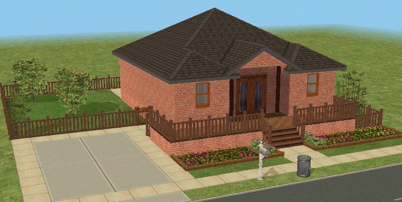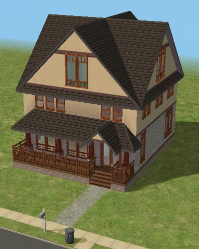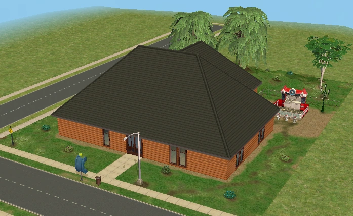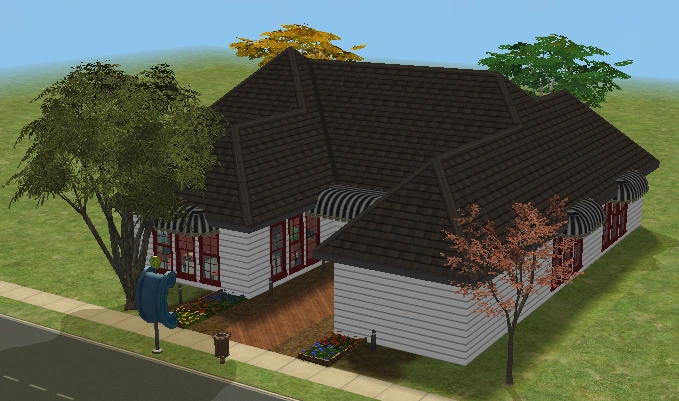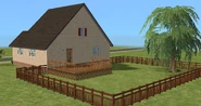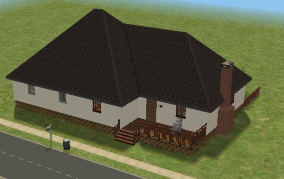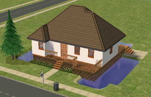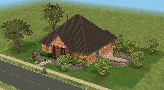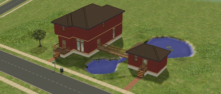 Hearty Home is one of the houses in Lots and Houses bin from The Sims 2: Seasons. It is a ranch-style house, with a large yard. Unlike most residential lots in the Lots and Houses bin, there are two buildings. The main house is near the mailbox, and a smaller building is to the right. Each one has a street entrance, and the two are connected by a bridge which crosses a pond. The secondary building has a small bathroom, and could be used to house a Sim.