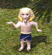 This gnome from The Sims 3: World Adventures is found primarily in Al Simhara, Egypt. Sultan Sam will often adopt poses that harken to Egyptian wall motifs. He can be found when a Sim chooses to "Explore The Catacombs" in the Egyptian mausoleum, as a random event while fishing in Egypt, or by refining metals using the base camp mailbox in Egypt. He can be found on a display stand, along with the other gnomes from World Adventures, in the Champs Les Sims Museum. He can also be found as a treasure in some Egyptian tombs.