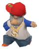 He looks like a caveman, and often adopts stereotypical cartoon caveman poses with his club.