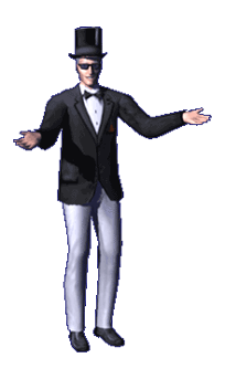 In The Sims (console), Malcolm wears a black smoking vest with a red handkerchief in his chest pocket, a white shirt, a black bow tie, white suit pants, black loafers with stockings, black rectangular glasses, and a black top hat. The first male default face was used to create him. Malcolm's interests are Politics, Money, and Outdoors, according to the Prima Strategy guide.