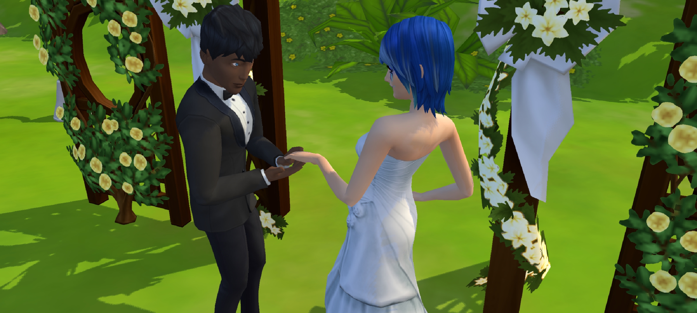 If the recipient Sim says yes to the proposal, the Sims will become engaged. The Sims then must fill their relationship bar one more time for the marriage interaction to become available. The Sim who did not begin the marriage interaction will then move into the other Sim's home, leaving their former home vacant.