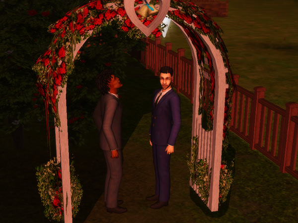 Sims can also get married by having a wedding party. A wedding party is basically like a normal party, except that the Sims are expected to get married before the party ends. The wedding arch may or may not be used. Other differences between normal parties and wedding parties are that every guest will be in their formal clothes, and any invited guests will show up, even if they have a low relationship with the inviting Sim.