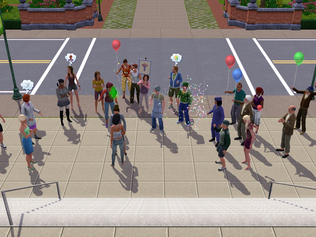 Vaccination clinics take place at a random community lot such as a park or graveyard. The doctor is given four hours to vaccinate as many Sims as possible, and is paid for each individual vaccination. A patient's reaction to the vaccination depends on their personality (cowardly Sims scream and cry, while brave Sims don't even flinch). Patients who show up but fail to get vaccinated receive a relationship drop with the doctor.