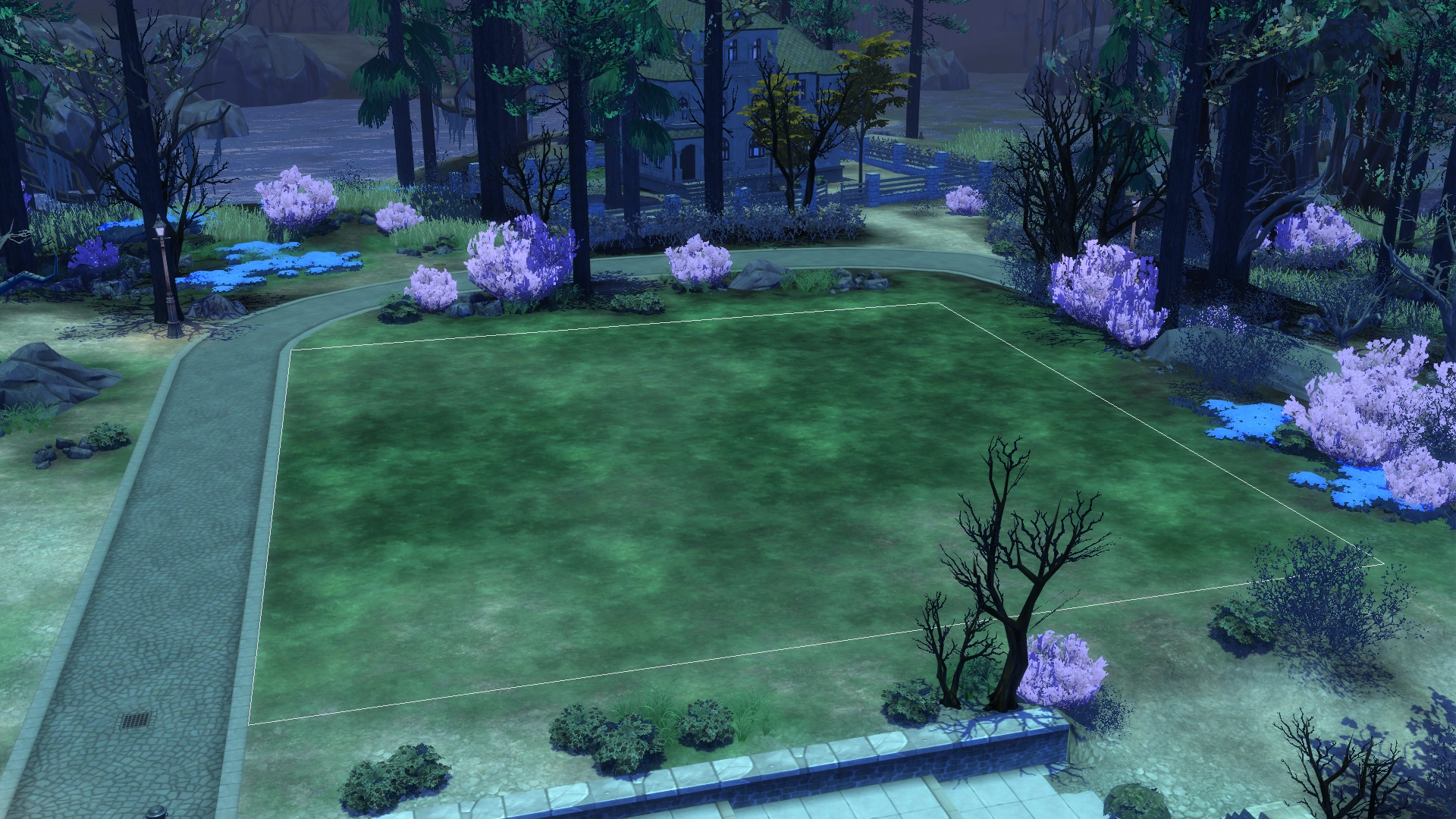 "Recently deceased? Living but Macabre? This spacious lot is the perfect starter spot for any Sim who is seeking an eerie setting and a charming afterlife aesthetic."