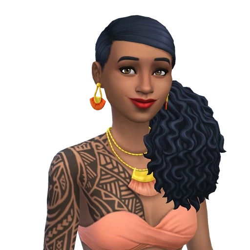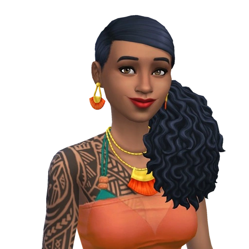 Nalani Mahi'ai is a pre-made mermaid residing as a townie on Sulani, the world shipped with The Sims 4: Island Living. She appeared in many trailers, teasers, and official renders for Island Living and is prominently featured in the center of the official cover of the expansion pack.