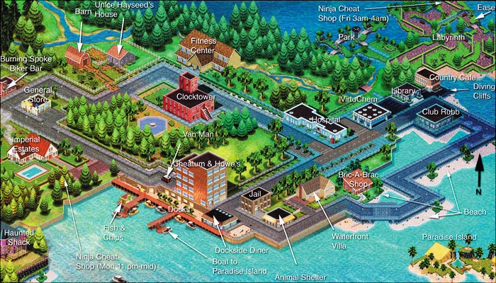 Map of SimValley in The Sims (console)