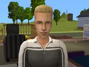 Oddly, when aged up, his muscle slider will be close to maximum without player intervention. Child Sims cannot build muscle, possibly meaning that Skip was aged up at some point, either during development or in Create-A-Sim, and had his body type modified.