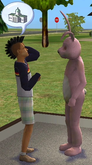 Although Social Bunnies do not appear in The Sims 3, there are several Easter eggs dedicated to them. For example, "Social Bunnies United" is the name of a charity Good Sims can donate to.[TS3] There are several objects containing references to the Social Bunny, including a poster, a music box from Ambitions, a bookshelf from Generations with a stuffed Social Bunny doll, and a prop statue of it in Showtime. Sims may also paint a brilliant medium painting of the Social Bunny or see one on the KidZ Zone station on the television (one may also be seen on the Kidztube station in The Sims 2).