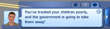 Social worker's message in The Sims 3 saying he/she will take away children. This is displayed if the player has a teen, young adult, adult or elder in the household
