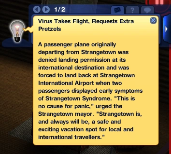 - The Infectious Disease Researcher level of the medical career mentions a contagious "Strangetown Syndrome".
