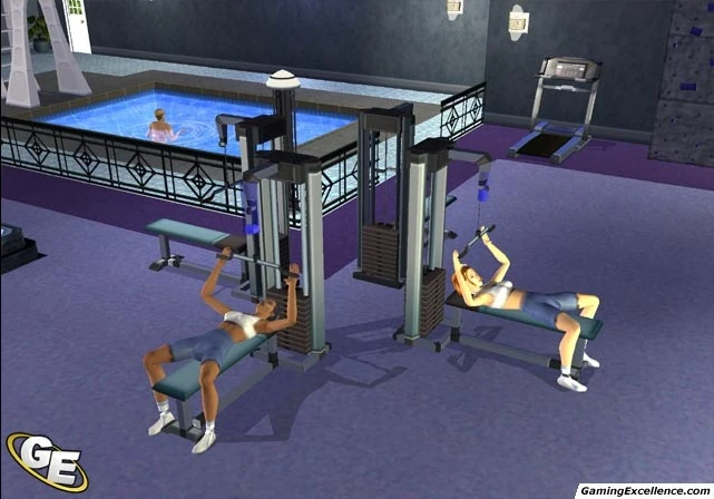 Aside from the lack of sleeping areas, the gym has most of the basics - there are two toilets, three showers and a kitchen area that has a toaster oven but no stove. In the bathrooms, there are wall mirrors that are good if the charisma skill is required for one of the careers. Players can also use objects such as the pool and weight benches to improve the body skill points which are useful for the three careers that can be promoted there. There is also a computer and television for fun, as well as a hot tub for comfort, extra fun, and hygiene.
