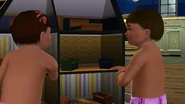When a baby turns into a toddler, most of its genetic traits become visible for the first time. Its personality and interests are visible, and it is controllable. Toddlers require the most attention of any life stage given their lack of independence. They depend on older Sims (teens, adults, or elders) to feed them, put them into and take them out of their cribs, carry them up and down stairs, and bathe them. If they have not been potty trained, they also depend on older Sims to either change their diapers or take them to the potty when necessary. Unlike teens, adults or elders, children can't interact with toddlers in many ways. Children can tickle toddlers and give them a family kiss, and the FreeTime expansion pack allows children to teach toddlers a nursery rhyme and sing it with them. Toddlers can cuddle cats and dogs, and may be licked by dogs; this will build a relationship between the toddler and the pet. The Sims 2: Apartment Life allowed two toddlers to "huggle", but before that, toddlers were essentially unable to interact with other toddlers, though two toddlers could autonomously fight over a bottle.