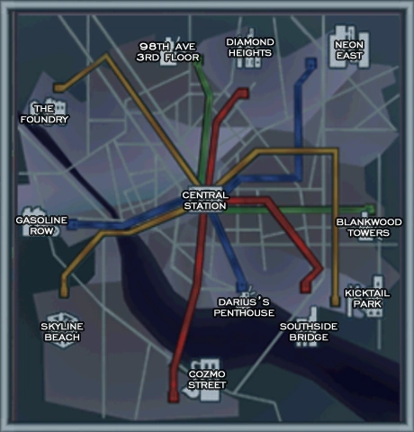Central Station is a subway, complete with one section of non-working subway cars taken over as a hangout for punk and goth subcultures. It is located right below Kick Tail Park.