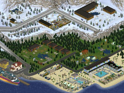 Winter-themed activities, such as the snowball fort, snow slide, and snowboard halfpipe, are only found in this area. If a rental shack is present, Sims can rent snowman kits.