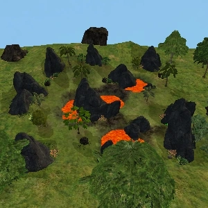 A volcano is a large geographical feature found occasionally through SimNation. They tend to be dormant tall craters, or active volcanos that can erupt.