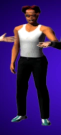 In The Sims for console, Woody is interested in The '60s, Weather, and Sports. He appears at Taylor's Place with his roommates, Peter, Randy, and Rod. This lot is not available for regular use; it must be unlocked in Get a Life (The Sims story mode). Once unlocked, the player can only play Taylor's Place as a two-player mode. When possible, they can play as Woody and the others (but they may have a different appearance). As for his appearance, Woody appears as a '60s hippie in a white tank top and gray pants with blue/white exercise shoes. He wears red sunglasses with a flame design carved on the left side (as he appears in Get a Life at Hot to Trot).