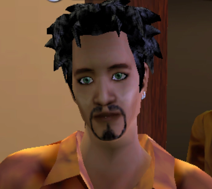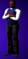 In The Sims for console, he is a part of the Party Guys household. He is dressed in a seventies get-up as he's interested in jazz and classical music. He is interested in Money, Politics, and Sports. He also appears in the Party Motel multiplayer game. He appears in this level with his counterpart from the Party Girls household, Pamela Party Girls.